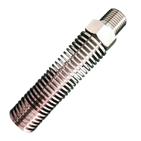 Extreme process temperatures reduce the accuracy, life and can possible damage pressure transmitters or gauges. The Omega cooling element is made from cast 316L stainless for maximum corrosion resistance and compatibility with process media. When used, in still air, cooling element can reduce a 300°C (570°F) liquid process temperature down to 25°C (77°F) at the active portion of the sensing element. This rugged machined bar stock construction allows the unit to operate to pressures of 100MPa (14,500 psi) at full temperature.