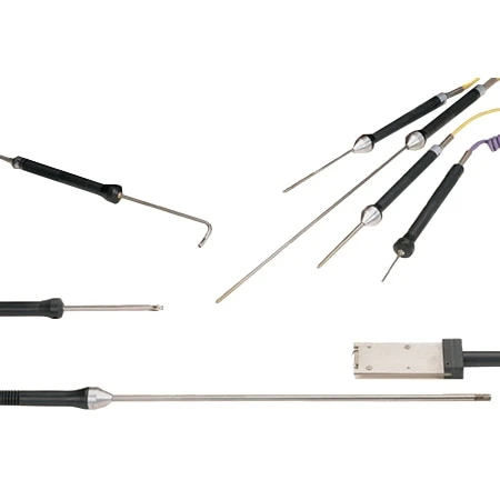 Micro-sensor probe, designed for precise measurements of small surface areas, such as transistors and integrated circuits. Small contact surface area of 0.040 x 0.118″ for fast response. 400°C (750°F) max. surface temperature.