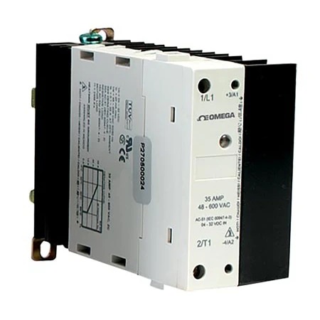 Designed for superior thermal performance in harsh industrial environments, OMEGA’s new SSRDIN/SSR3PH relay is the most advanced DIN rail solid state relay in its range. The epoxy-free design eliminates stress on internal components, preventing damage to the encapsulant during load failure. The vertical placement of the directbond substrate allows the SCR die to efficiently transfer heat to the heat sink and into ambient air. As a result, these relays can operate at a lower temperature than their competitors, which accounts for the higher I2T and surge-current ratings.